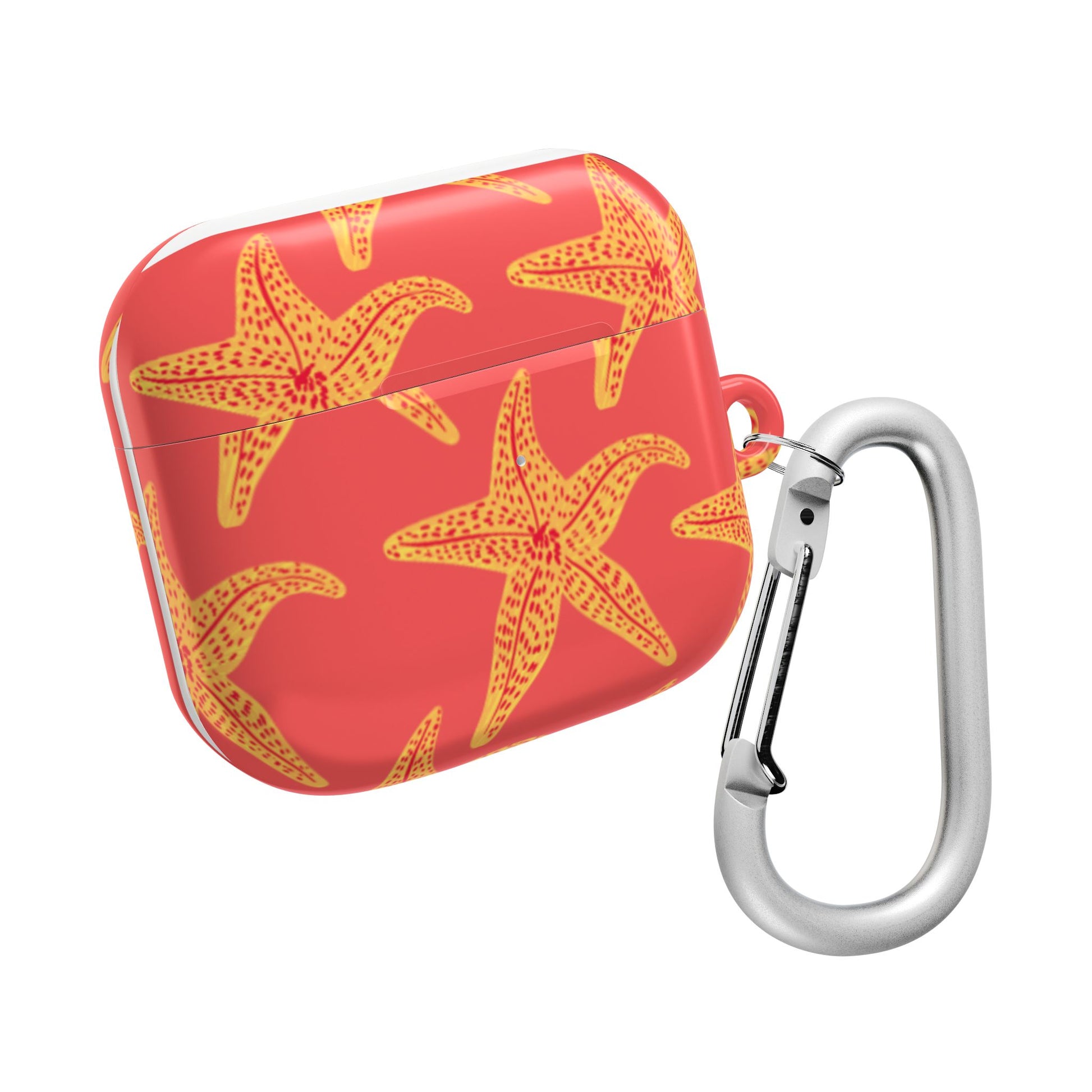 Add a splash of seaside charm with the Starfish Glow AirPod case – bright orange starfish scattered across a clean, crisp background for a playful and vibrant look. Slim, durable, and easy to carry, it offers stylish protection wherever you go.
